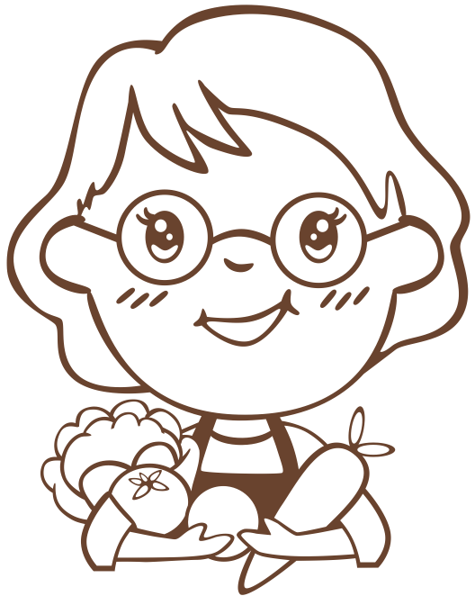 Logo von Tante Willbrok – Eine stilisierte Zeichnung einer freundlichen Person mit Brille, die Gemüse in der Hand hält, umgeben von einem Kreis